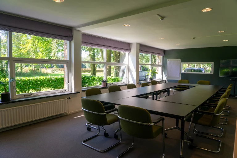 De zaal biedt comfortabel plaats aan maximaal 15 personen en is ideaal voor vergaderingen waarbij concentratie en rust vooropstaan. De ligging bij Lodge de Fazant maakt het bovendien mogelijk om uw vergaderdag te combineren met een overnachting op het landgoed.